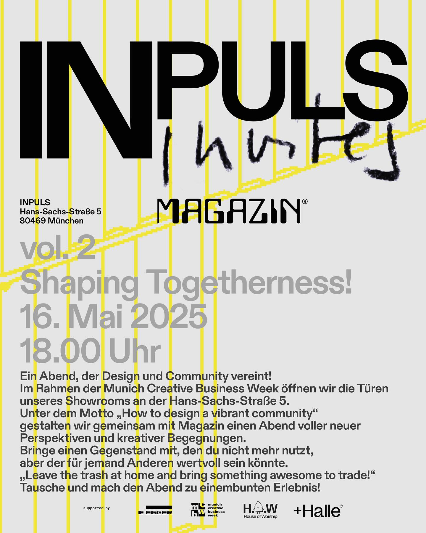 Anlässlich unseres 10 Jährigen Jubiläums und dem Einzug in unsere neue Location starten wir die Eventreihe „INPULS invites“. Mehrmals jährlich sollen in diesem Rahmen unsere Räume zu einem definierten Thema mit individuell ausgewählten Kooperationspartnern bespielt werden.