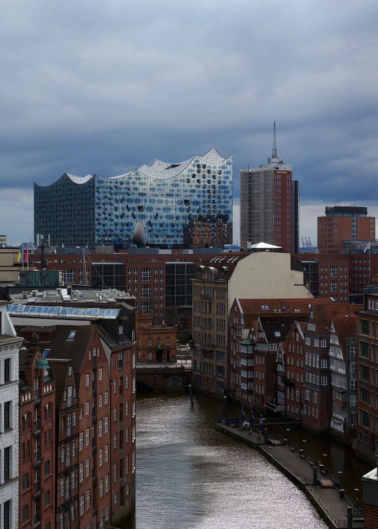 Inhaltlich und gestalterisch wird das Thema „Stadt“ aufgegriffen: Die charakteristischen Tichel- und Ziegelfassaden Hamburgs spiegeln sich in rostfarbenen Tönen, Steinoberflächen und strukturellen Elementen wider – ein architektonisches Zitat des städtischen Kontexts, das die Arbeitswelt in einen vertrauten, zugleich urbanen Rahmen stellt.
