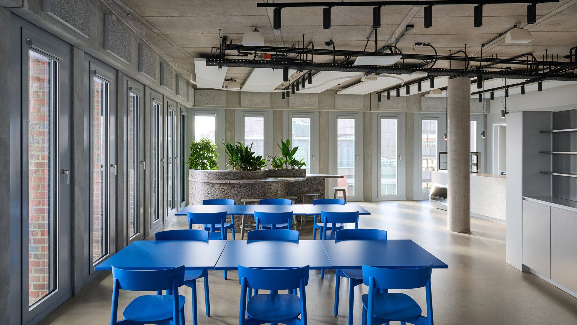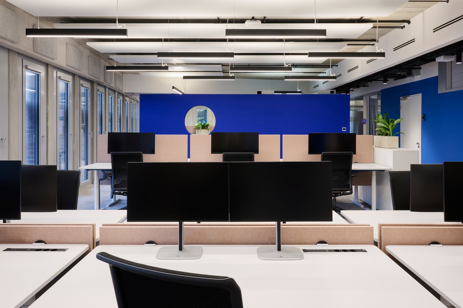 Homebases, welche den einzelnen Teams zugeordnet werden, bilden die Basis des Arbeitsplatzkonzepts, welches auf die prozentuale Anwesenheit der Mitarbeitenden im Büro ausgelegt ist. Ergänzt werden diese durch Fokusarbeitsplätze, Teambüros und temporär nutzbare Einzelbüros.