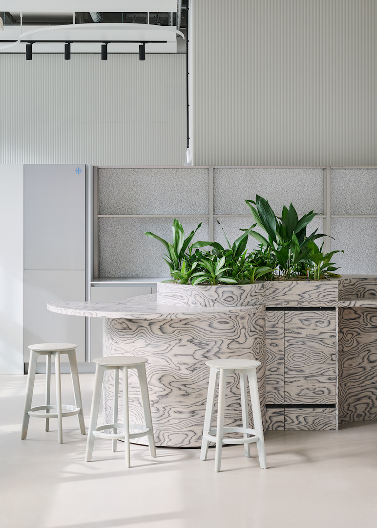 Großzügige Teeküchen bieten die erste Anlaufstelle für die Mitarbeitenden. Sie bieten Platz für spontane Kommunikation zu Beginn und während des Arbeitsalltags.